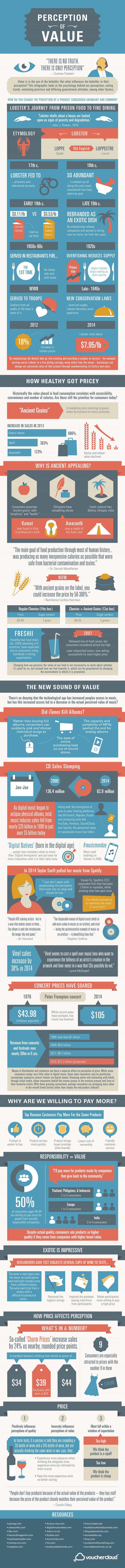 Well this is quite a fascinating infographic on the perception of value. Especially useful if you're selling on eBay, Amazon and especially your own site and still believe the only way to sell more is to be the cheapest. This one is well worth bookmarking.