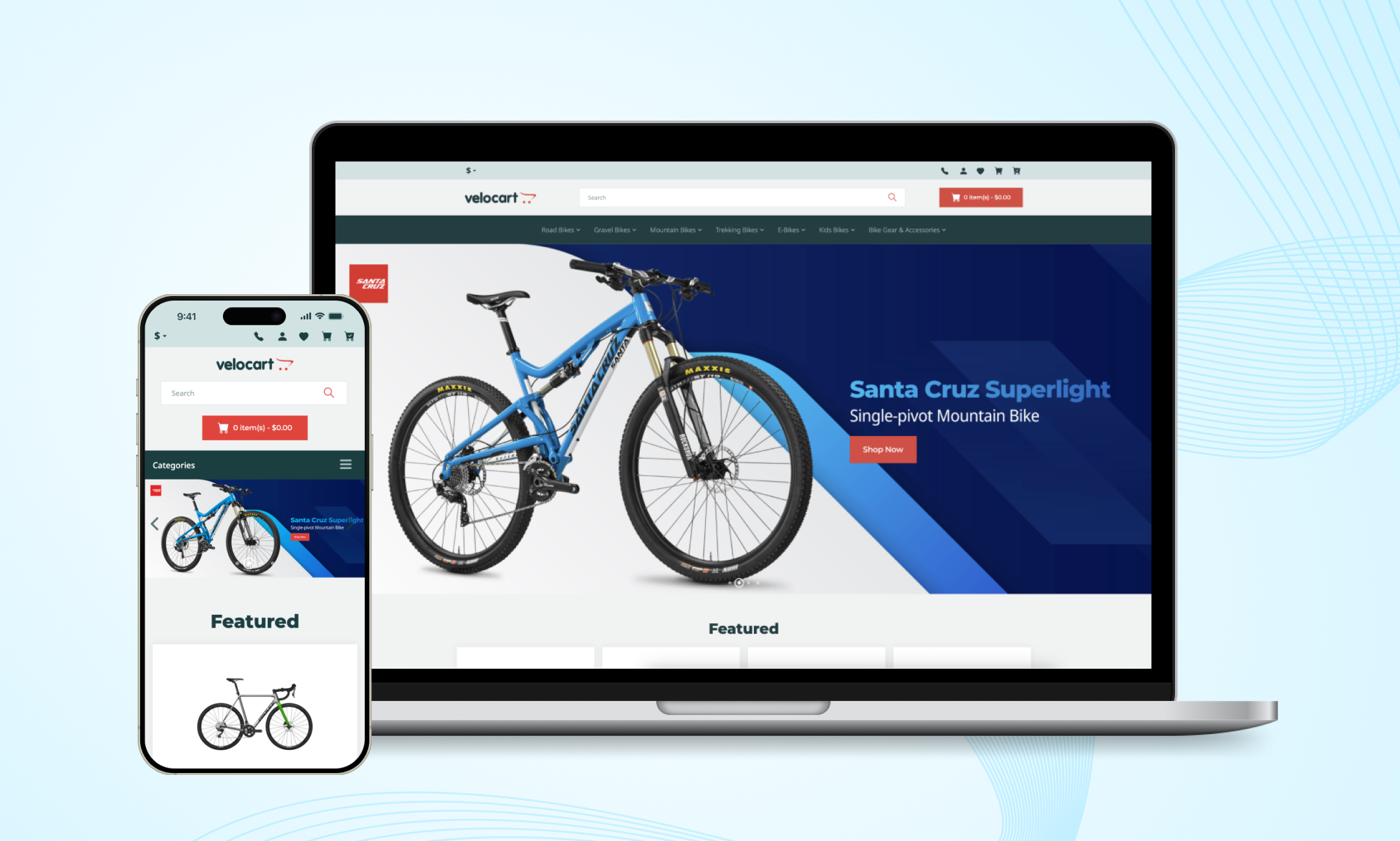 Give your bike shop the front-end it deserves. Choose VeloCart and let your products take the spotlight.